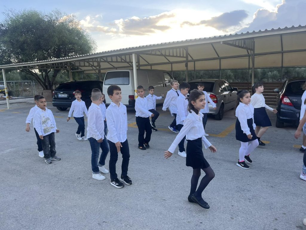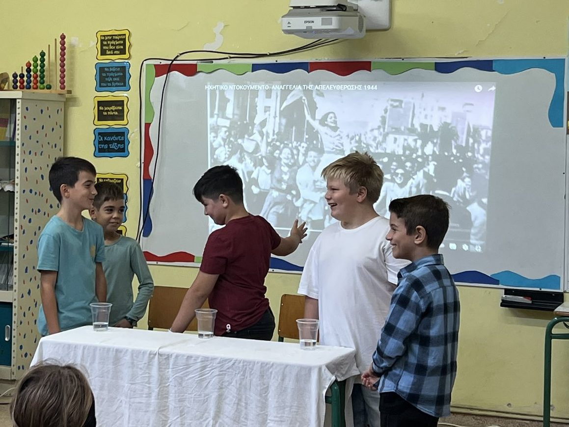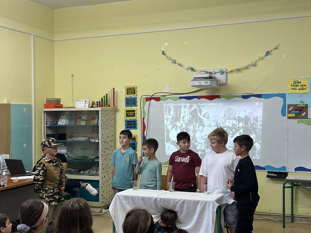 Με την εποπτεία των δασκάλων τους, Γεώργιου Παντή και Αθανασίας Γεωργιάδου, οι μαθητές και οι μαθήτριες της Ε’-ΣΤ’ τάξης του σχολείου διάβασαν το χρονικό της εποχής και τραγούδησαν τραγούδια του ’40, μαζί με τα παιδιά της Α’-Β’ τάξης.